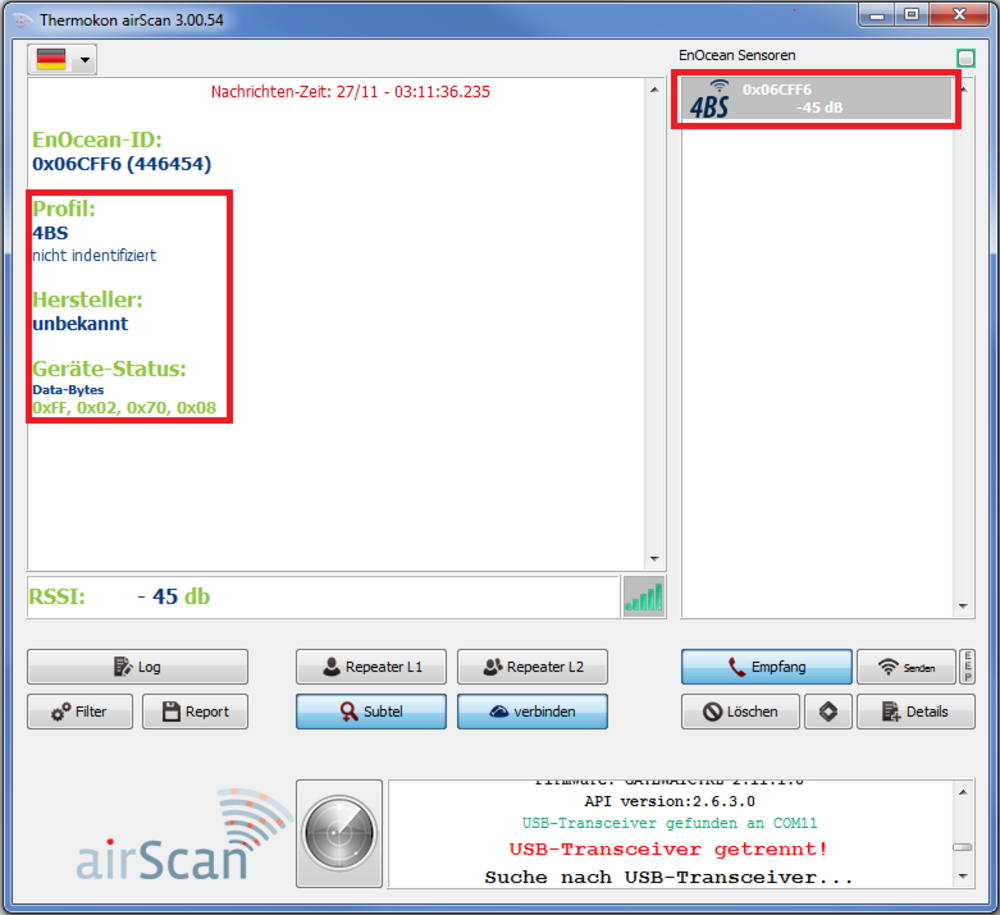 Warum erkennt airScan/airConfig den EnOcean USB Transceiver nicht?