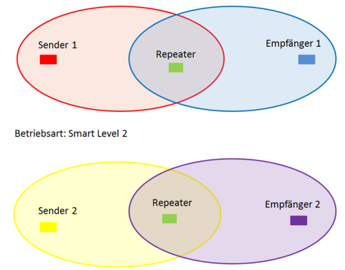 Die Betriebsarten Smart L1 und Smart L2 sind bevorzugt zu benutzen. Beim Einsatz mehrerer Repeater verstärken diese sich sonst möglicherweise gegenseitig. Damit wird die Inbetriebnahme unnötig erschwert und die Umgebung mit vermeidbarem Funkverkehr belastet.