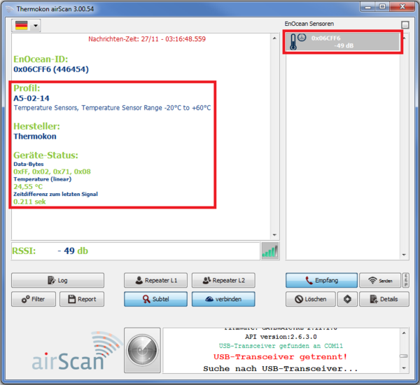 Thermokon bietet für die Software airConfig und airScan einen EnOcean-fähigen USB-Transceiver an. Vor der ersten Verwendung muss ein Treiber für diesen Transceiver installiert werden.