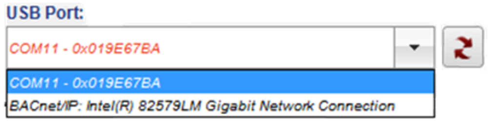 Nun wird der USB-Transceiver von airConfig erkannt und kann ausgewählt werden: